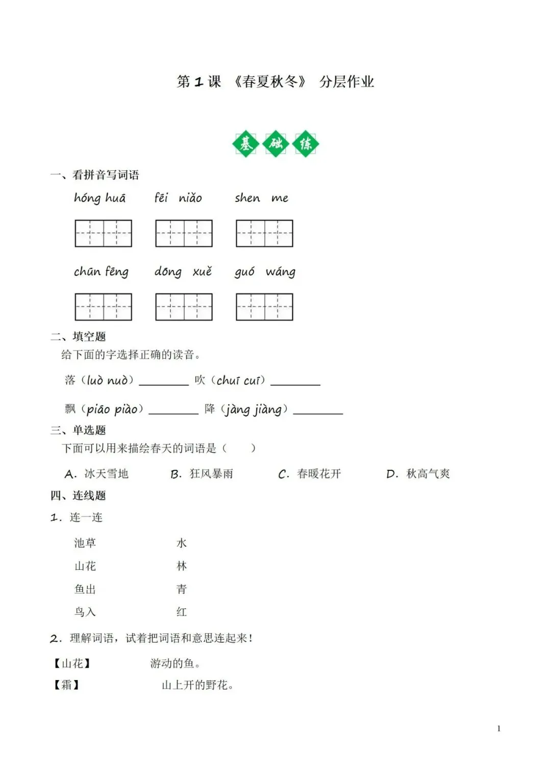 26春人教版《语文》一年级下册课件+教案2+分层作业,可下载!