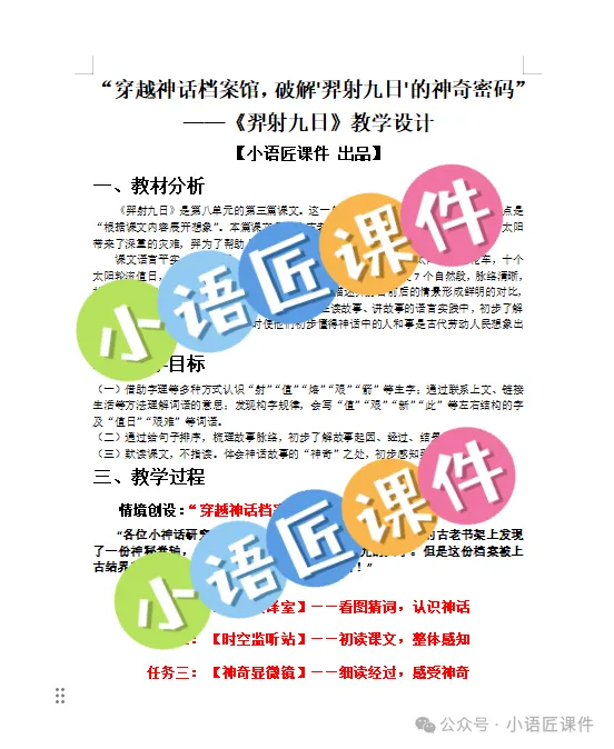 【二下课件】情景设置:“穿越神话档案馆,破解'羿射九日'的神奇密码”——《羿射九日》(+教学设计!)