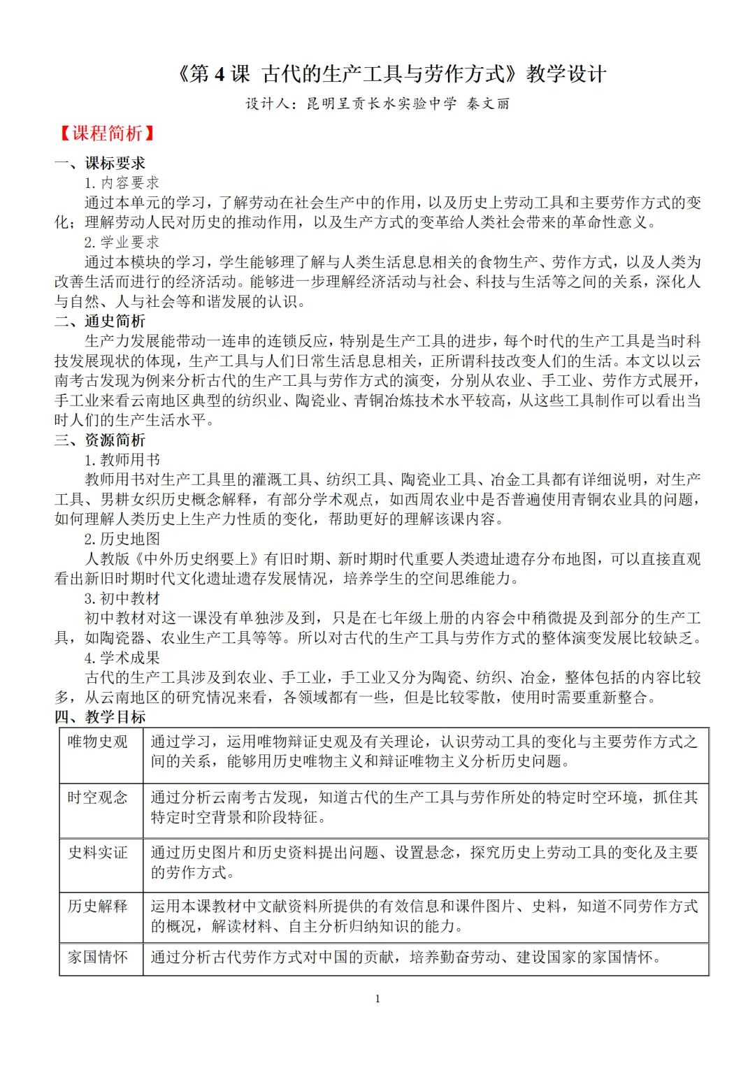 课件投稿| 秦文丽:《选必2》第4课 古代的生产工具与劳作方式(+设计+学案)