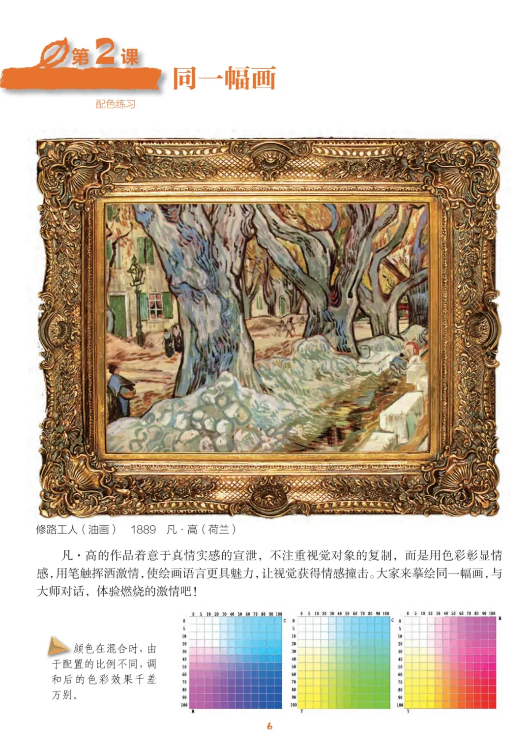 (3)体验 3 :任意找一种《向日葵》这幅画的颜色,尝试调配一下,是否很接近 ?