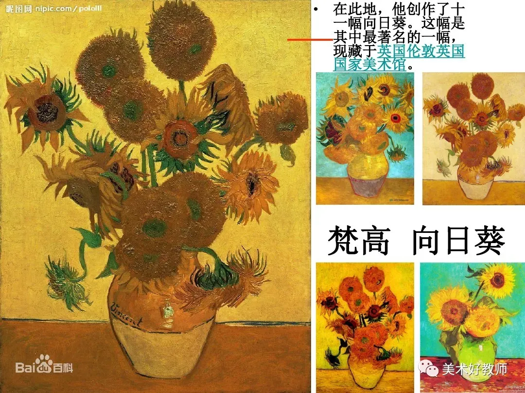 3.导出新课,板书课题:同一幅画。课件出示:凡·高的《向日葵》。