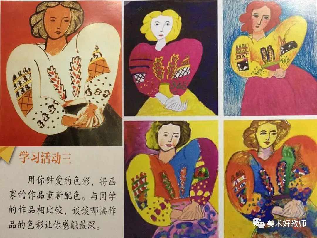 3、情感目标:能表现出对世界名画的欣赏、临摹与组合的美术活动的兴趣和成功的快乐、富有敏锐的观察力和集体协作的精神。