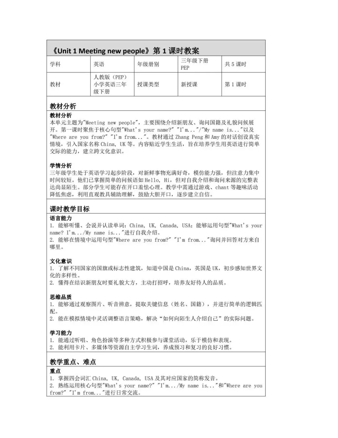 内容涵盖学情分析、教学目标、重点难点、教学方法、学生活动、课堂练习、作业设计、板书设计、教学反思等,word可编辑(可定制)