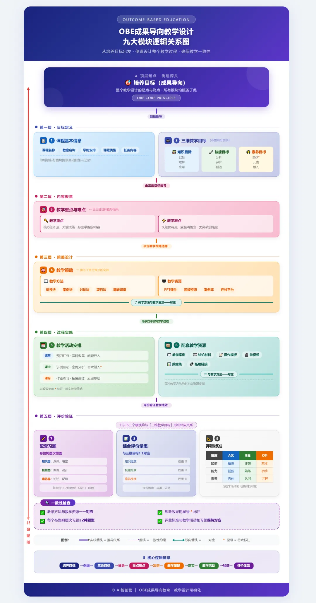 OBE 成果导向教学设计·九大模块逻辑关系图