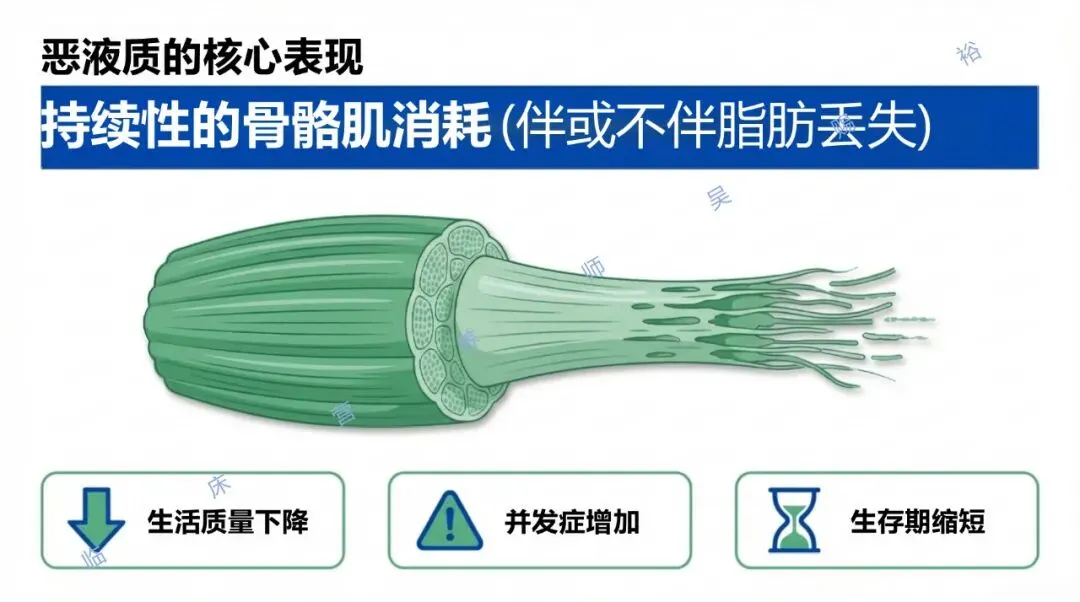持续性的骨骼肌消耗是恶液质的核心表现,使得患者生活质量严重下降,增加并发症的发生率和病死率。