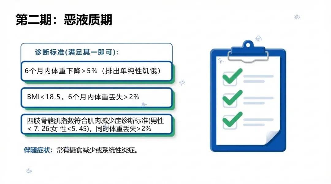 恶液质可在早期发现并及时干预,一旦发展到晚期,抗肿瘤治疗及营养治疗均难以奏效。