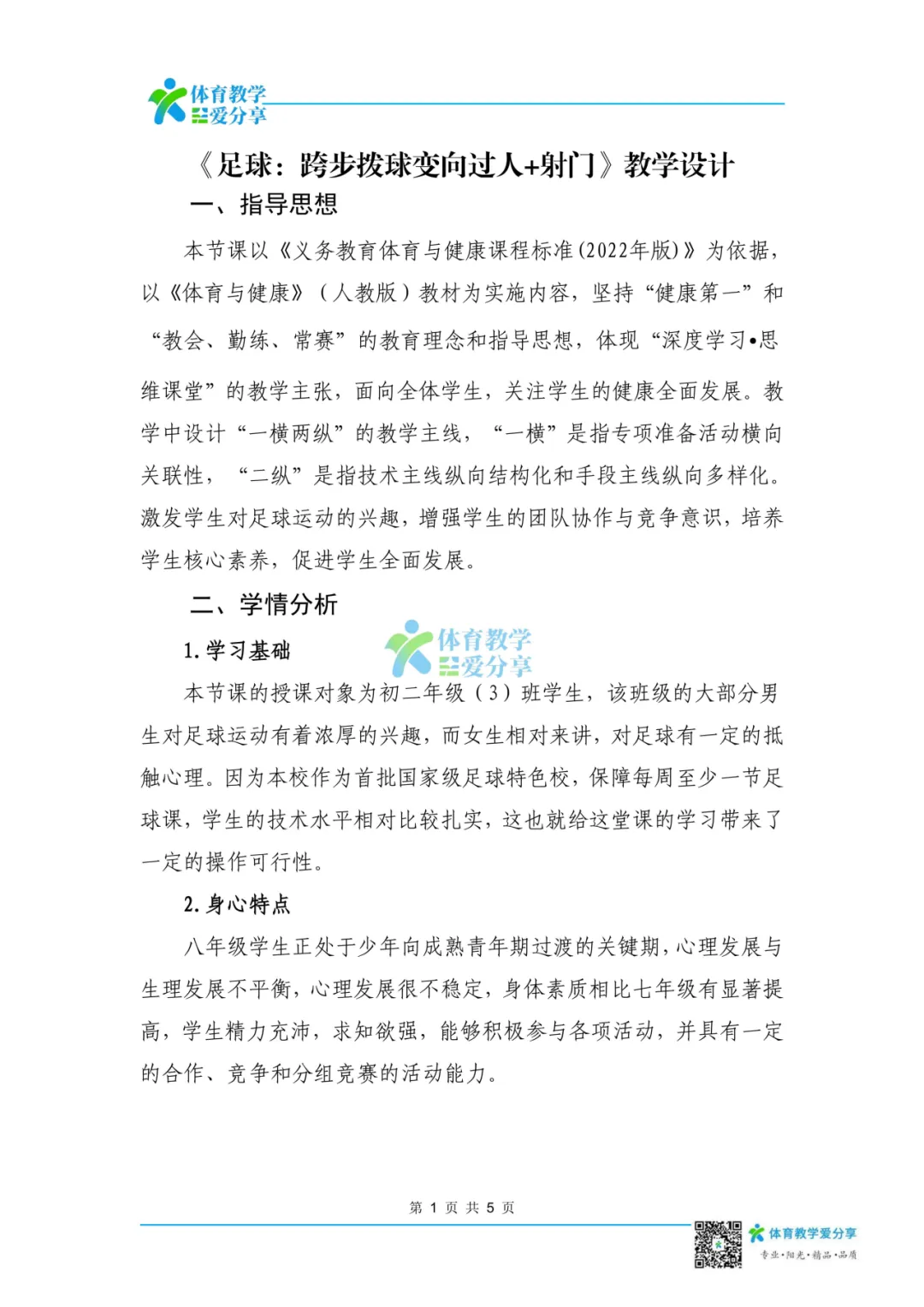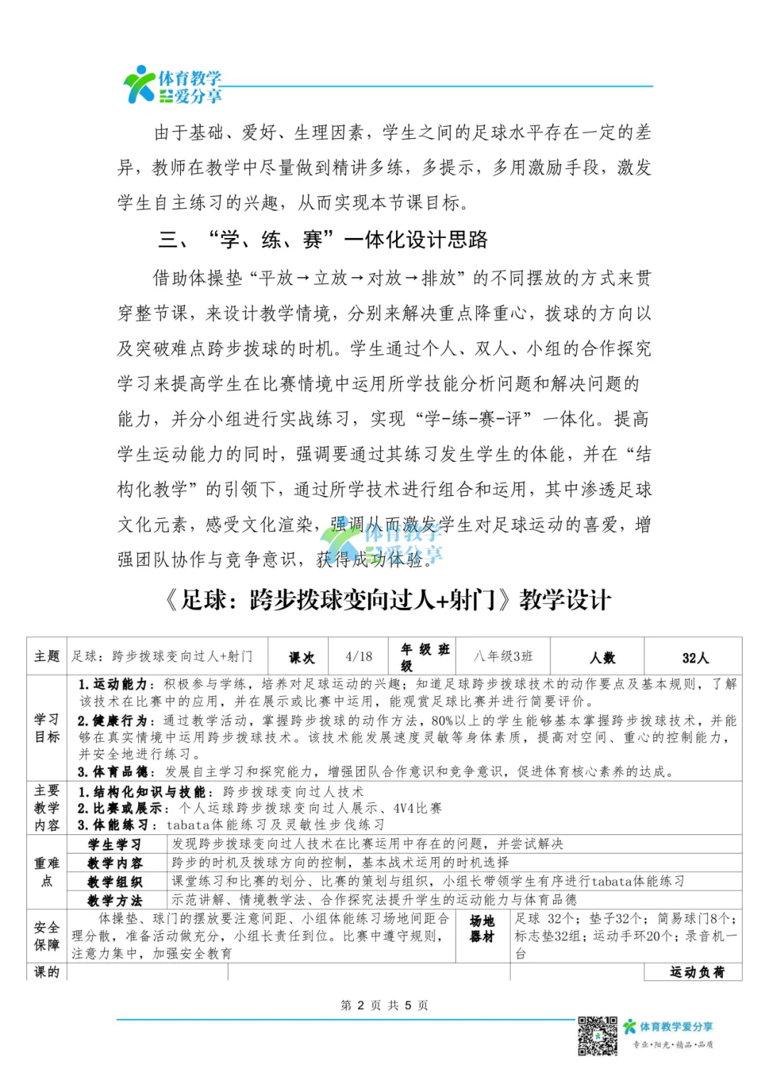 本节课的授课对象为初二年级(3)班学生,该班级的大部分男生对足球运动有着浓厚的兴趣,而女生相对来讲,对足球有一定的抵触心理。因为本校作为首批国家级足球特色校,保障每周至少一节足球课,学生的技术水平相对比较扎实,这也就给这堂课的学习带来了一定的操作可行性。