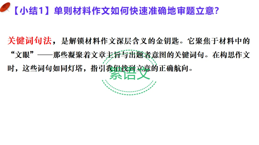 【小结 1】单则材料审题核心:抓关键词句,锁定材料主旨。