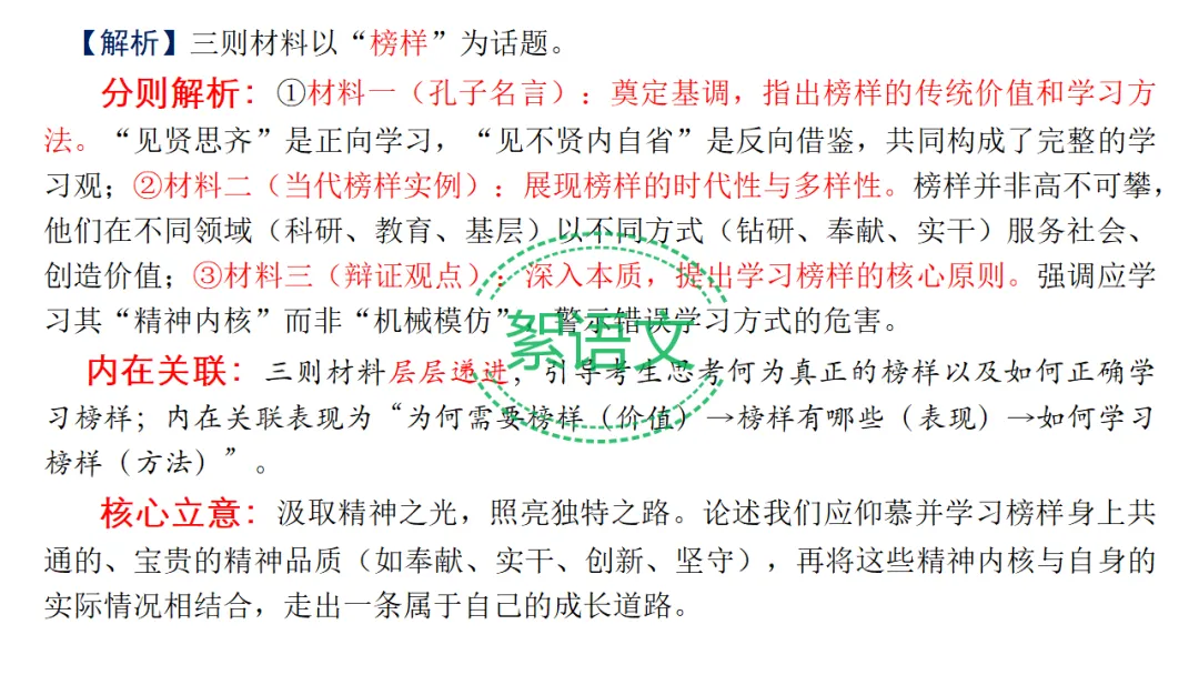 2.难点:准确梳理材料内在逻辑,做到立意全面、深刻、不遗漏。
