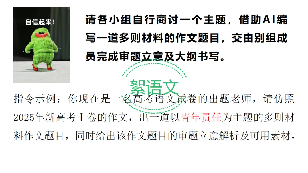 1.小组任务:借助 AI 命制一道青年责任主题多则材料作文题。