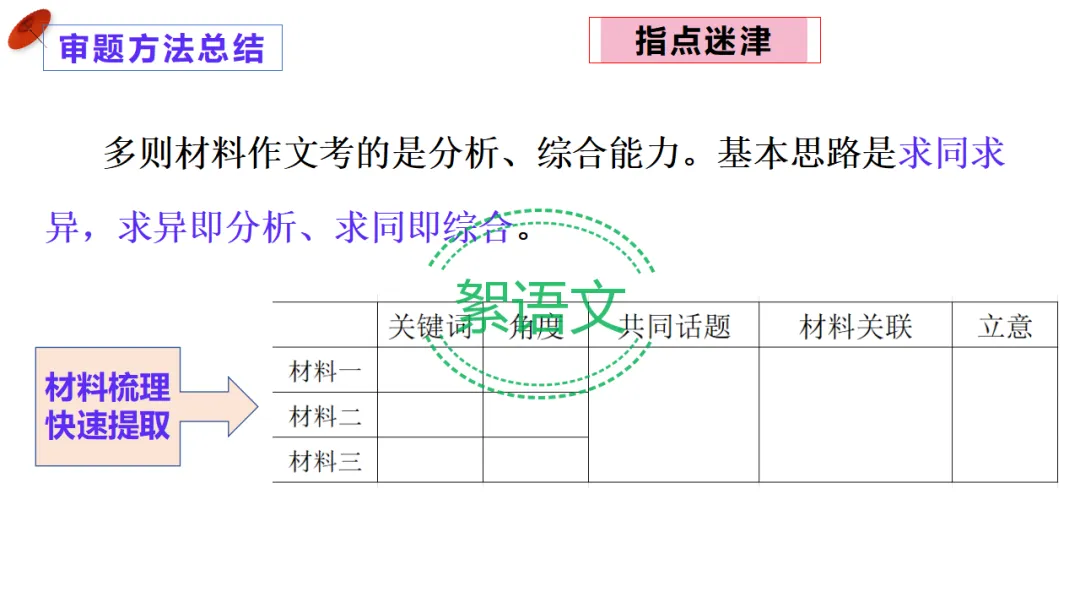 【小结 2】多则材料审题三步法