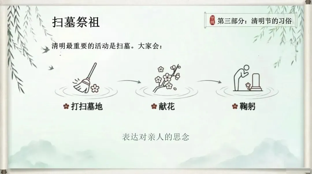 清明节主题班会课课件——清明时节知多少,传统节日的文化与思念(30页课件PPT+讲稿+教学设计),PPT共30页,可编辑,无水印,由于内容篇幅有限,只展示部分页面如下: