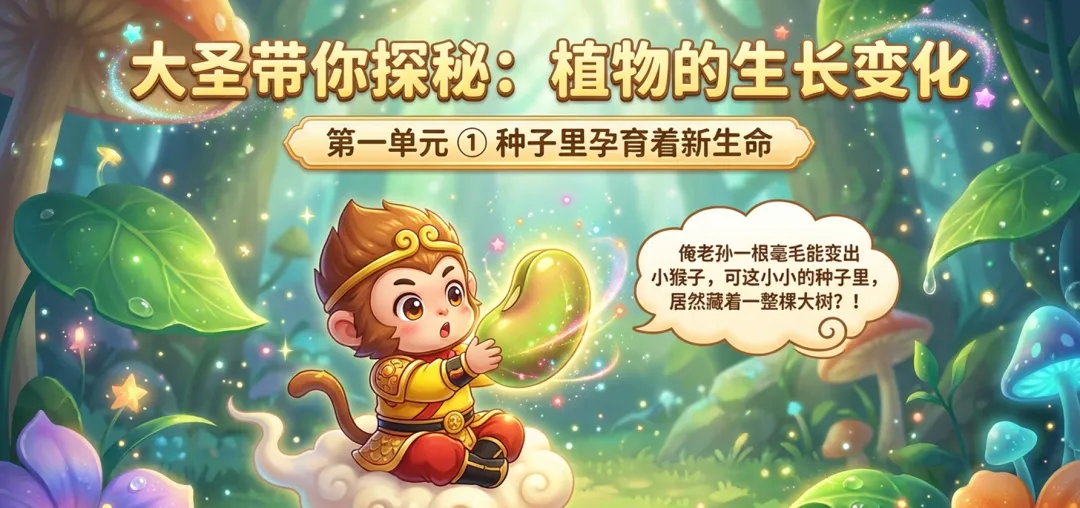 来了来了!今天和大家分享一份小学科学课件,内容为四年级下册第一单元第一课:种子里孕育着新生命。以孙悟空这一学生熟悉的形象做叙事线索,将种子结构这基础生物学知识进行了系统还清晰、富有趣味性地讲解。