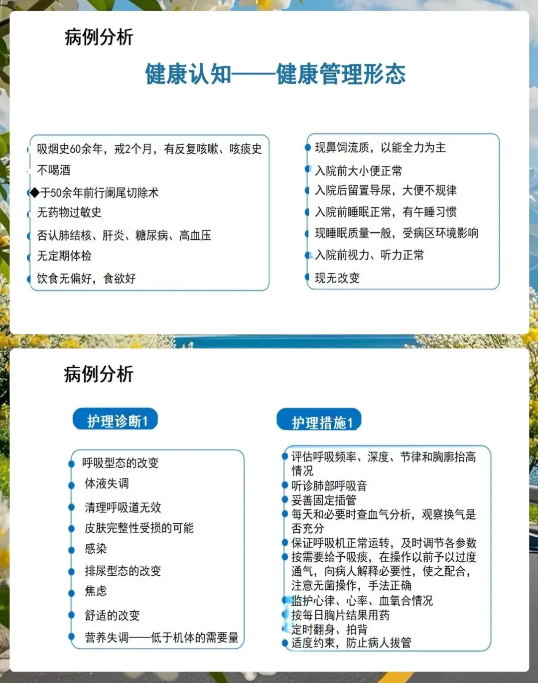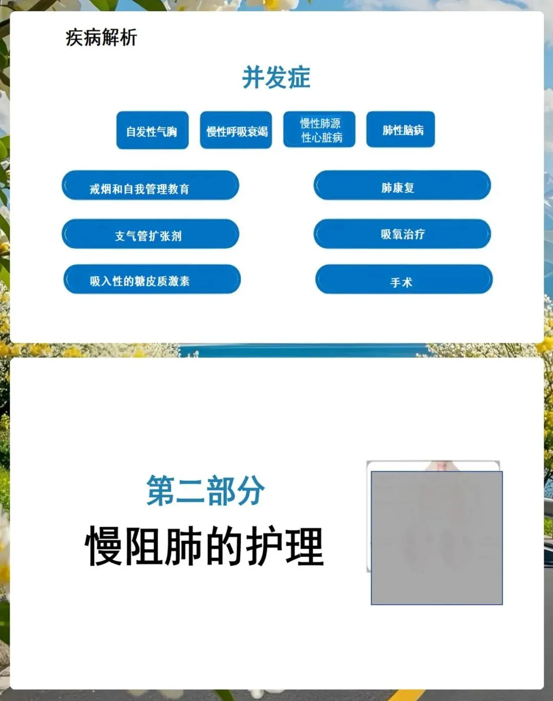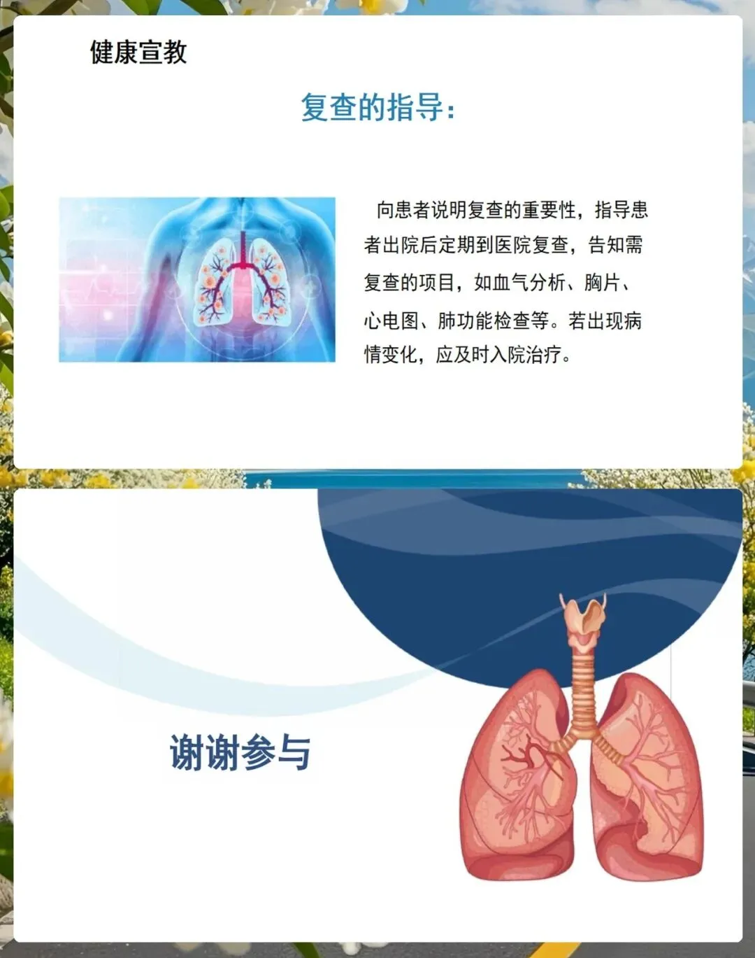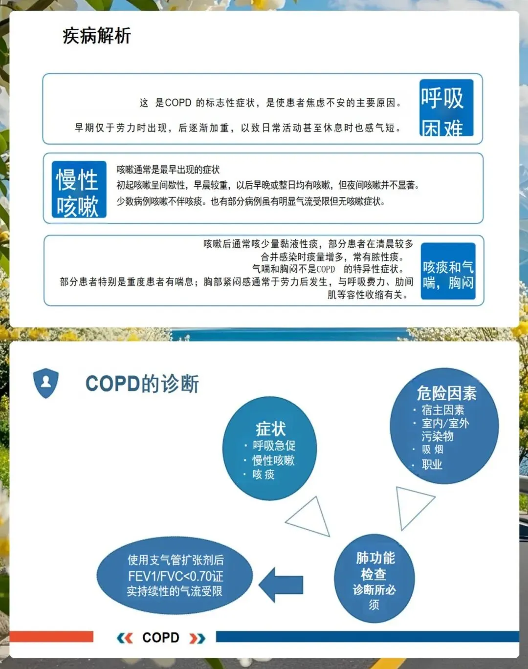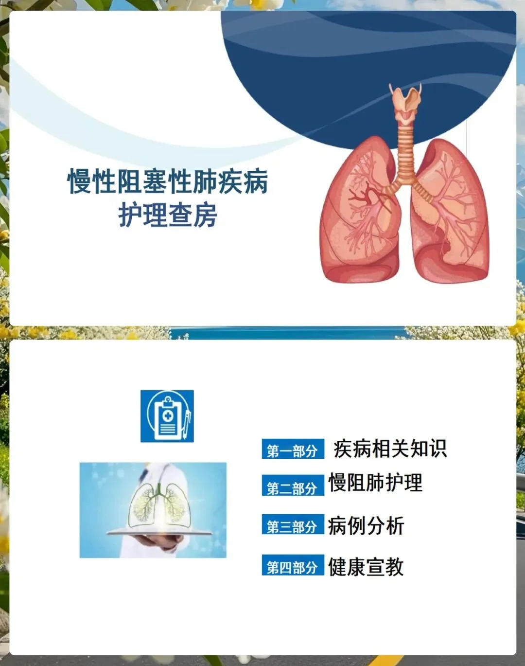 各位同事,慢阻肺虽然是一种慢性病,但通过我们规范的护理和有效的健康指导,完全可以延缓疾病的进程,提高患者的生活质量。