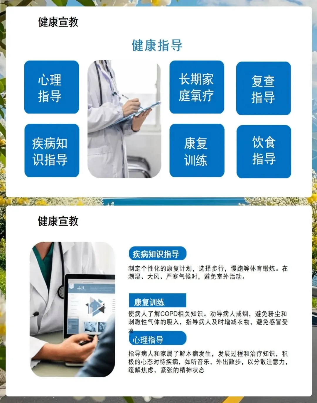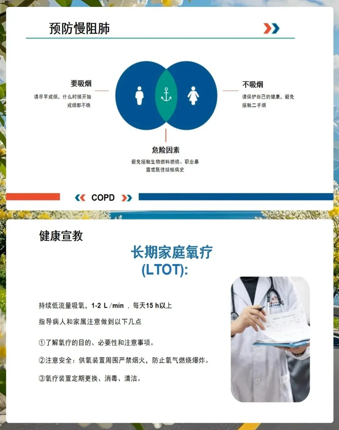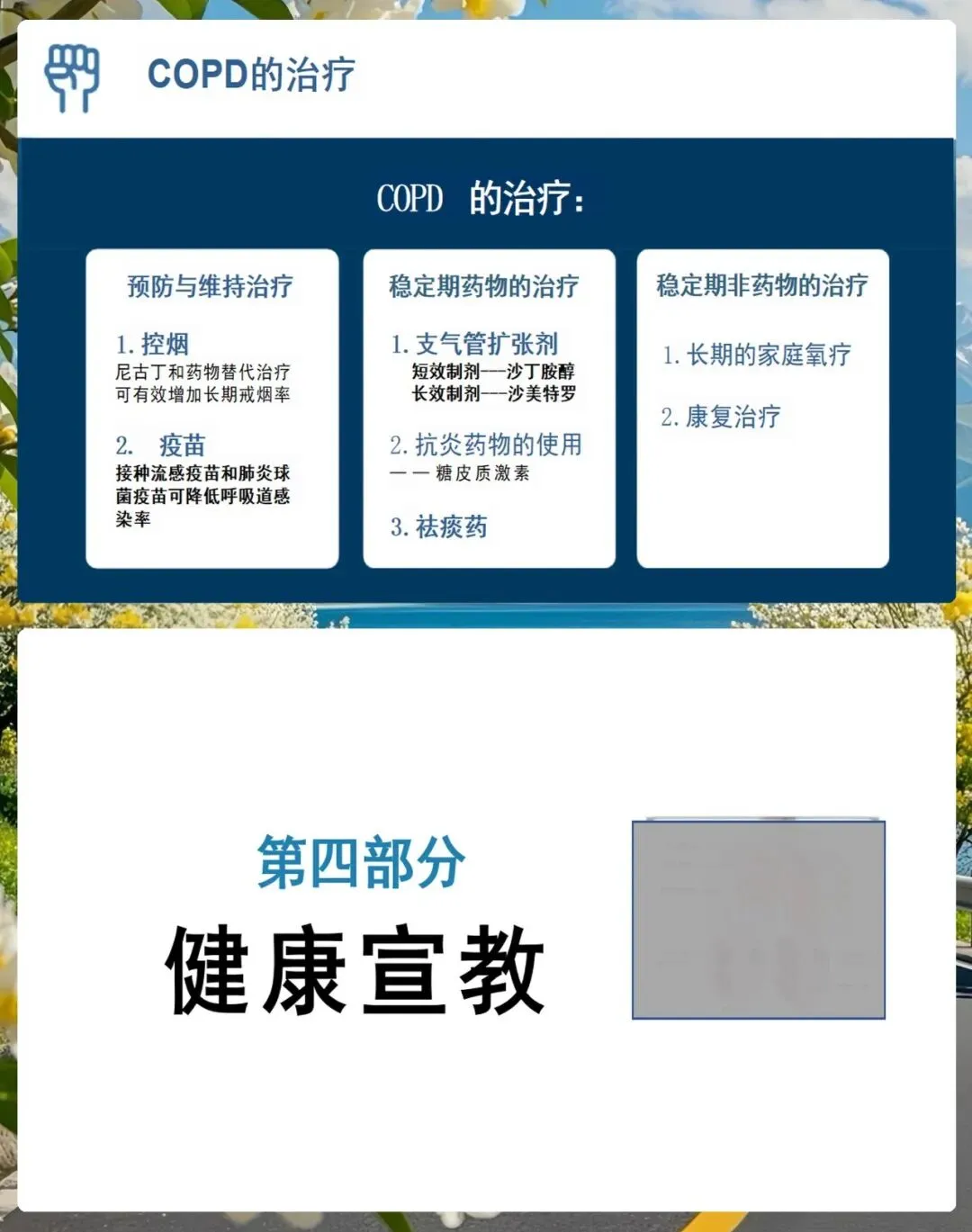最后,我们来看看出院指导和健康宣教,这也是慢阻肺管理中非常关键的一环。