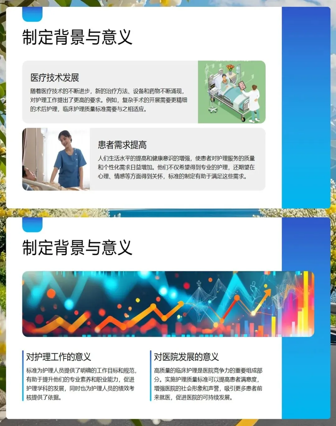 对我们护士个人来说,标准是保护我们职业安全的盾牌;对医院来说,高质量的护理服务是医院核心竞争力的体现,直接关系到患者的满意度和医院的声誉。