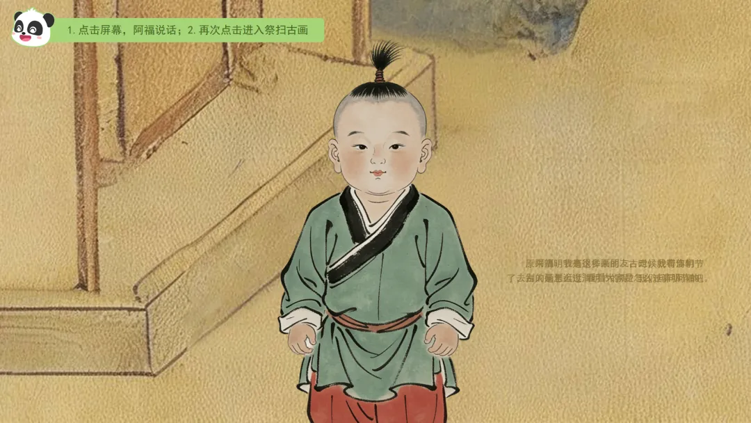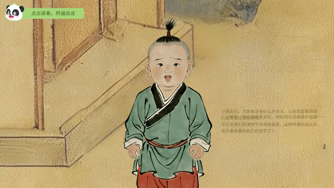 ——原来清明节是这样来的。古时候就有清明节了,古人是怎么过清明节的呢?我们问问阿福吧。