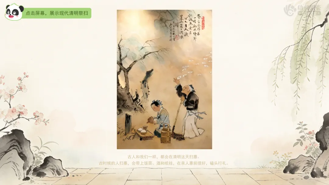 ——在清明节这天,古代的人们会为去世的人扫墓、纪念他们,也会开心地踏青、感受春