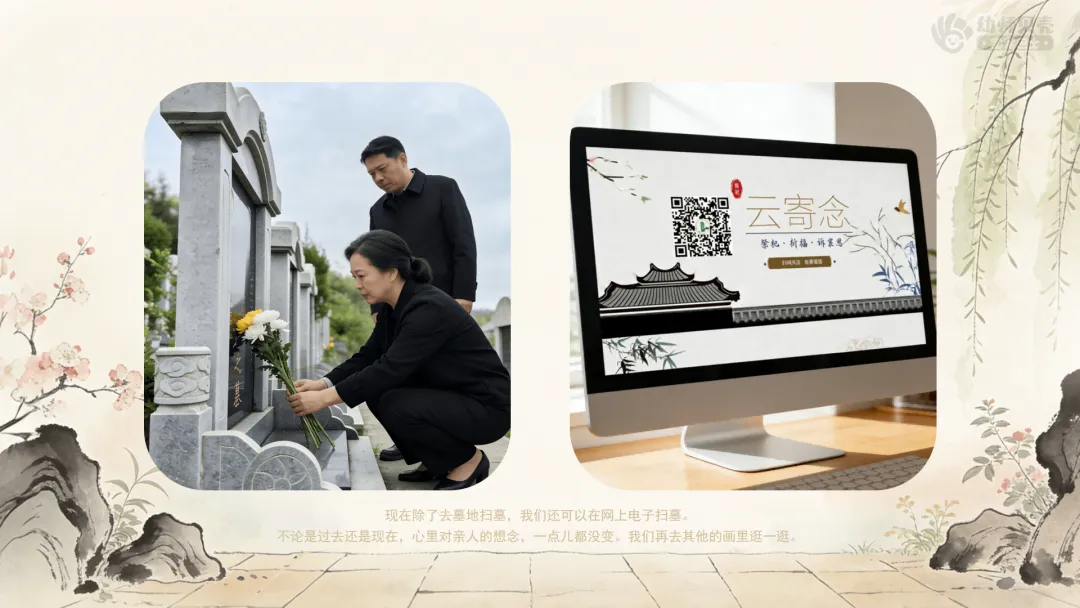 在亲人墓前摆好,磕头行礼。现在除了去墓地扫墓,我们还可以在网上电子扫墓。不论是过
