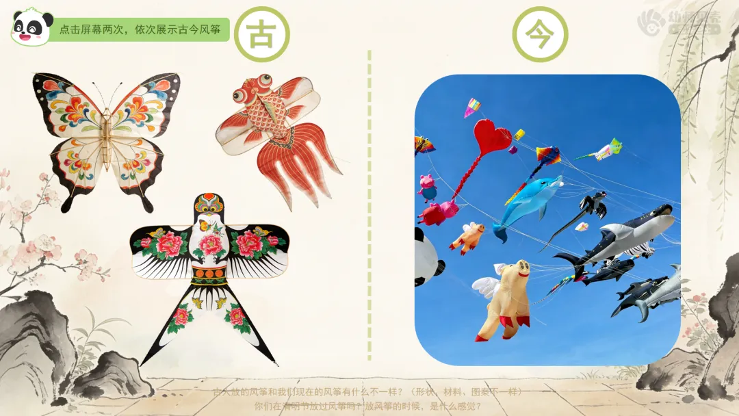 ——古人放的风筝和我们现在的风筝有什么不一样?(形状、材料、图案不一样)