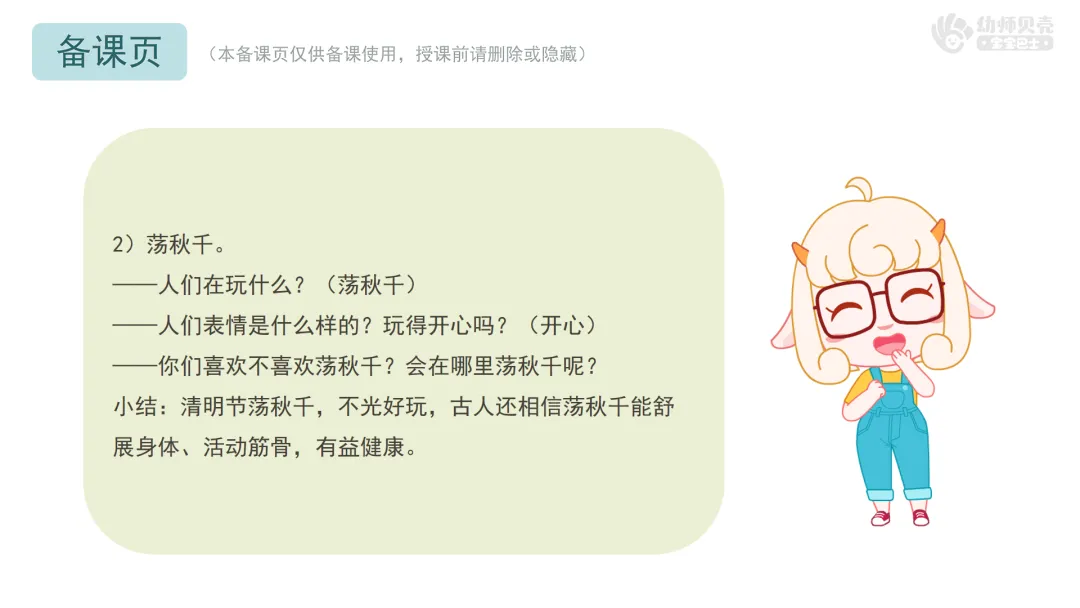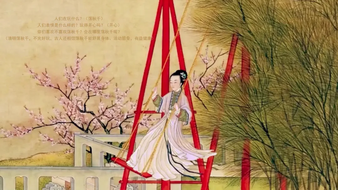 小结:清明节荡秋千,不光好玩,古人还相信荡秋千能舒展身体、活动筋骨,有益健康。