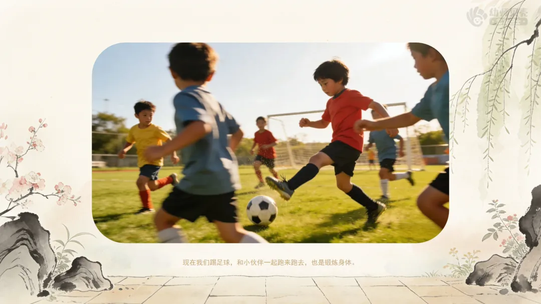 我们踢足球,和小伙伴一起跑来跑去,也是锻炼身体。