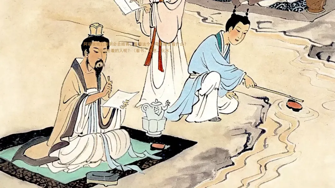 ——阿福说他们清明会去踏青,看看这个人弯着腰在看什么?那边坐着的人呢?(看书、休