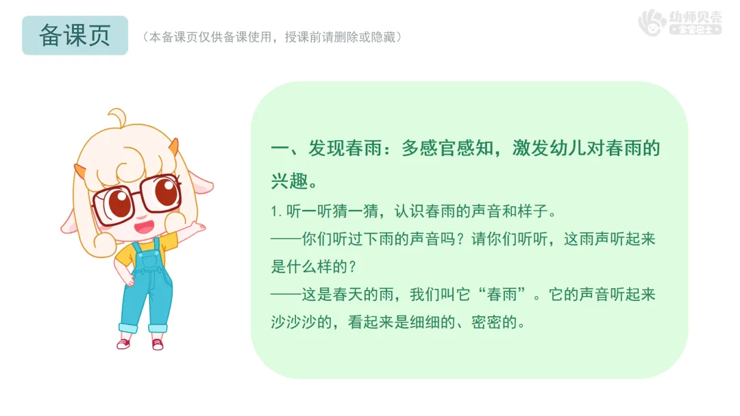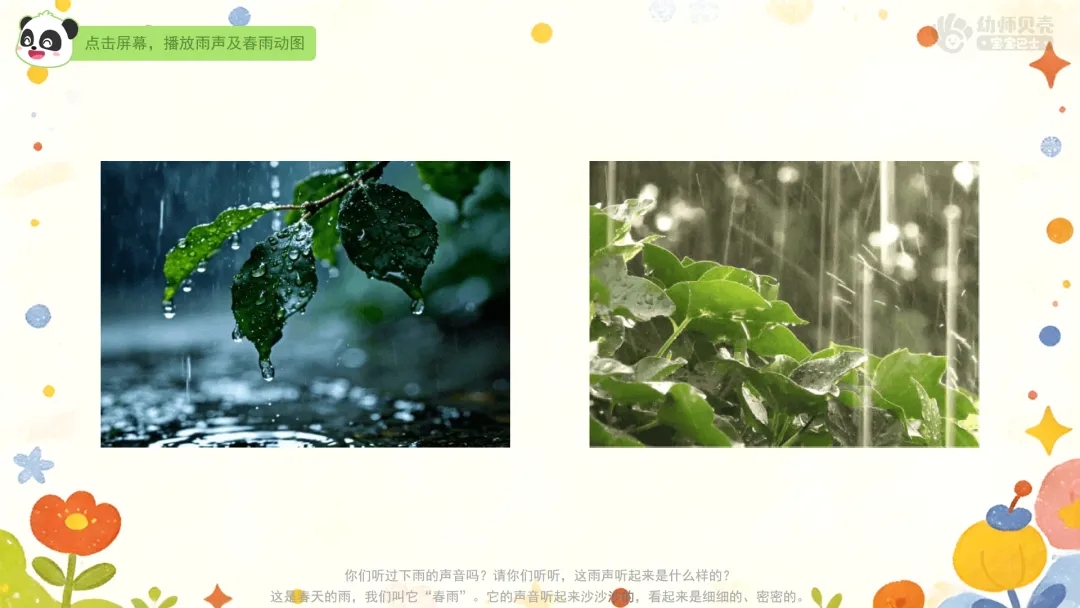 1.听一听猜一猜,认识春雨的声音和样子。
