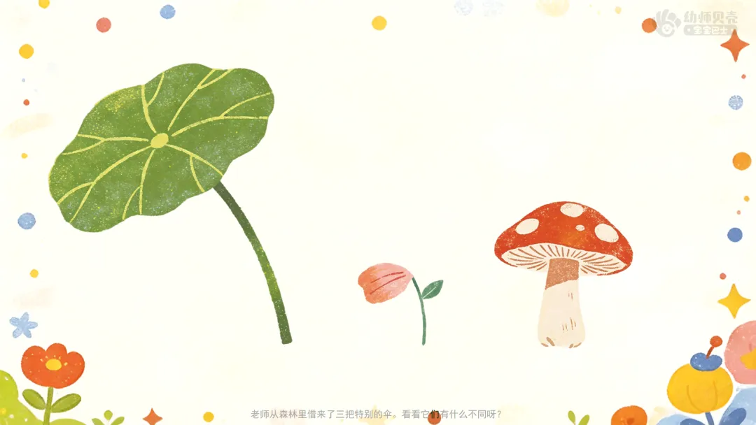 ——老师从森林里借来了三把特别的伞。看看它们有什么不同呀?