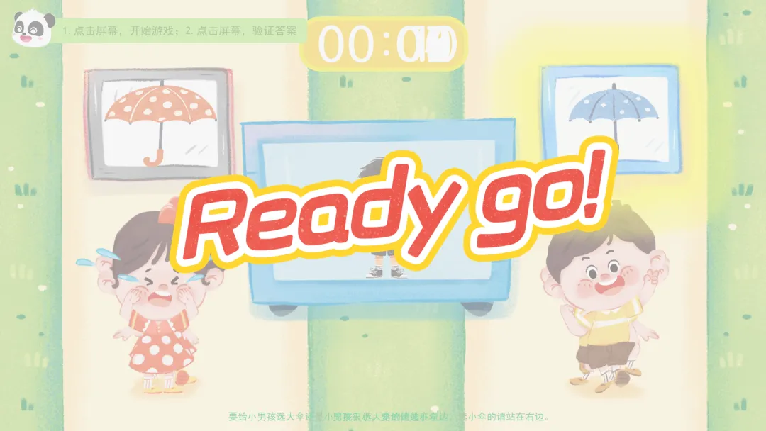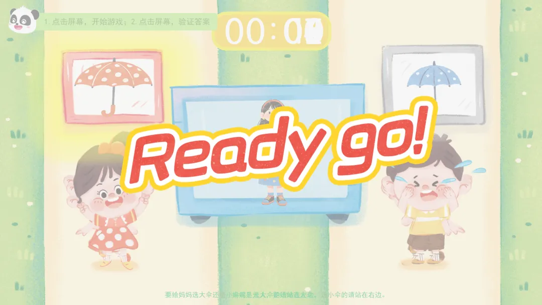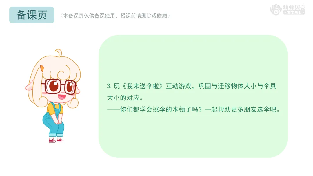 3.玩《我来送伞啦》互动游戏,巩固与迁移物体大小与伞具大小的对应关系。
