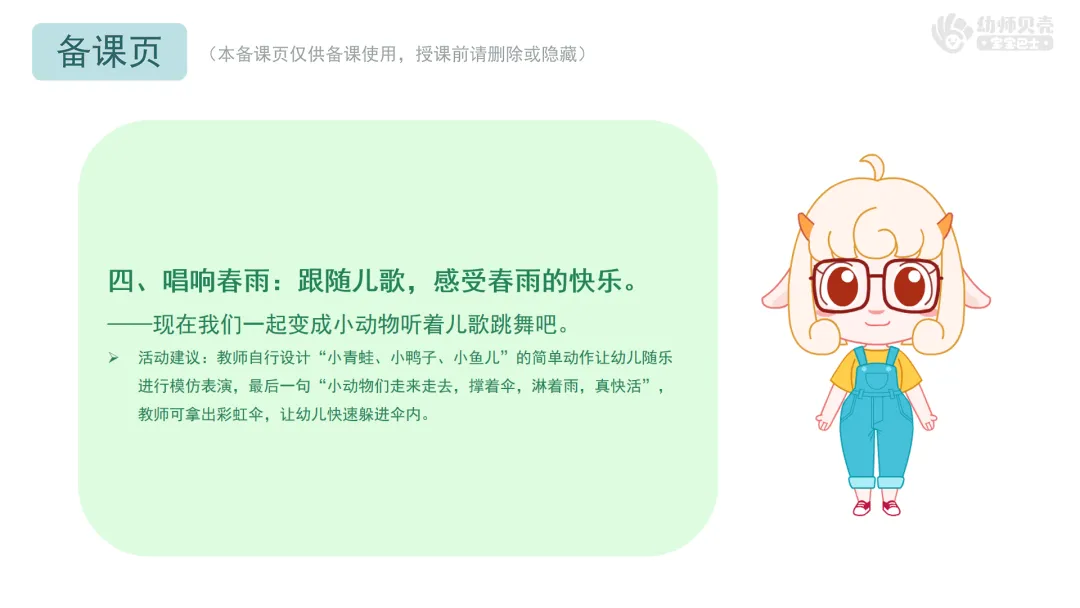 四、唱响春雨:跟随儿歌,感受春雨的快乐。