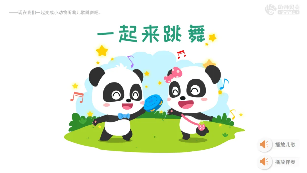 ——现在我们一起变成小动物听着儿歌跳舞吧!