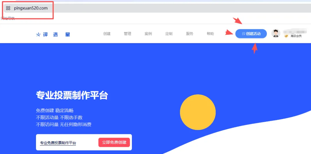 1、在浏览器输入评选星官方网站https://www.pingxuan520.com/,进入后注册并创建投票活动。