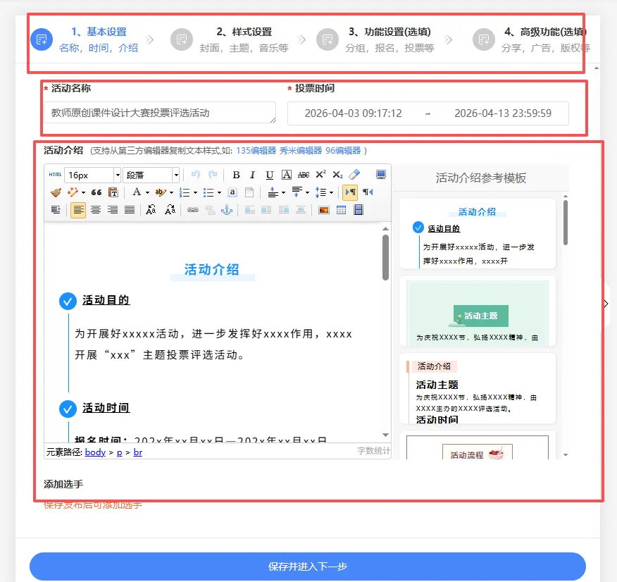2、按照平台要求逐步完善投票活动的各种信息。