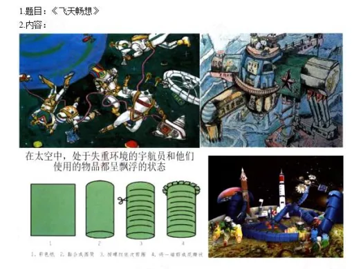 (2)今天用绘画的形式来表现了太空畅想,还可以用身边的瓶瓶罐罐做一个立体的太空畅