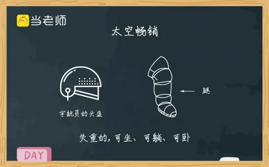 (2)新授二:畅游太空之前,大家需要做好哪些准备?得需要一个飞行器和飞船,在身上还要穿上太空服,和头盔。