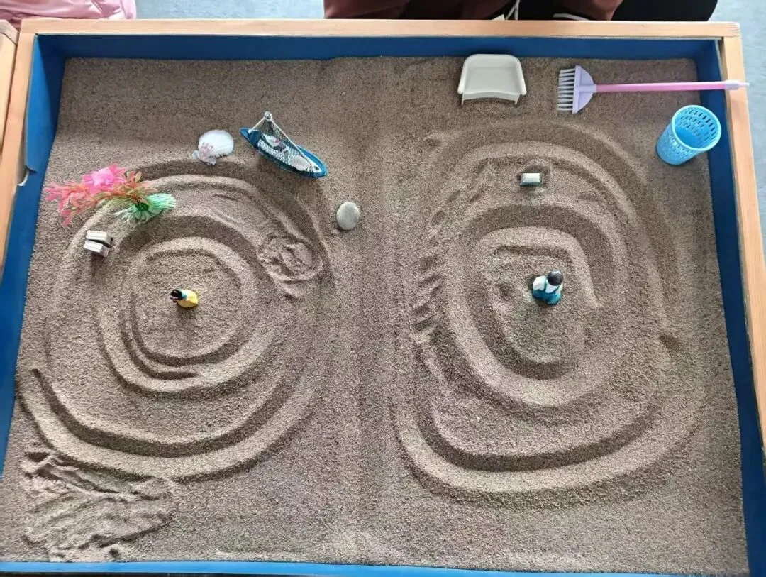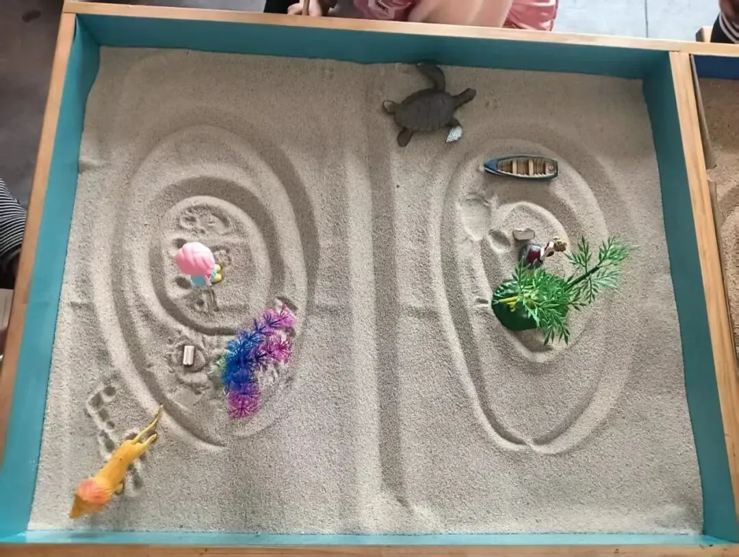 一、热身运动。1.先自我介绍,要按自己的名字中的一个字说个成语。2、介绍沙盘、沙具等等。3、讲游戏规则(如堆山开河算一次,小心拿放沙具等等。4、拿个沙具说成语)