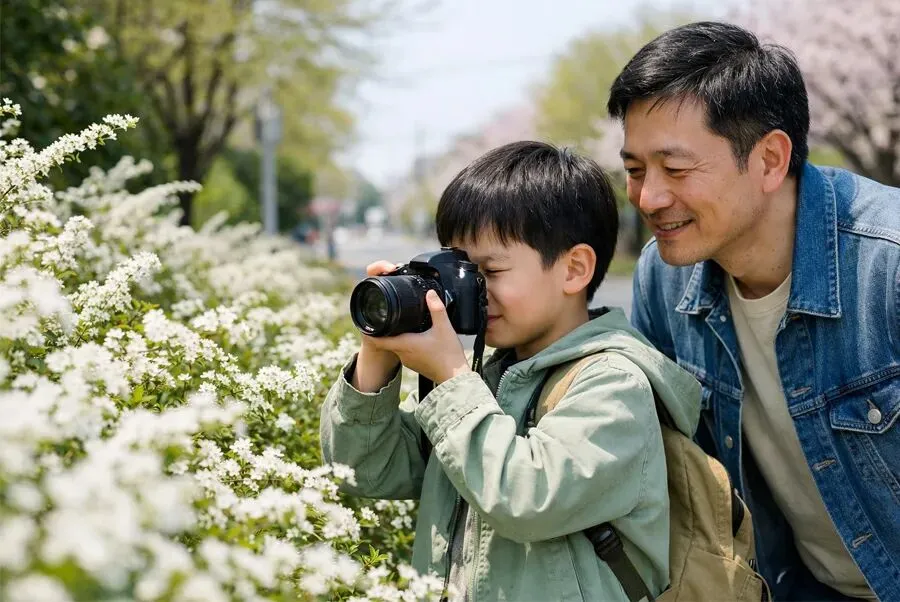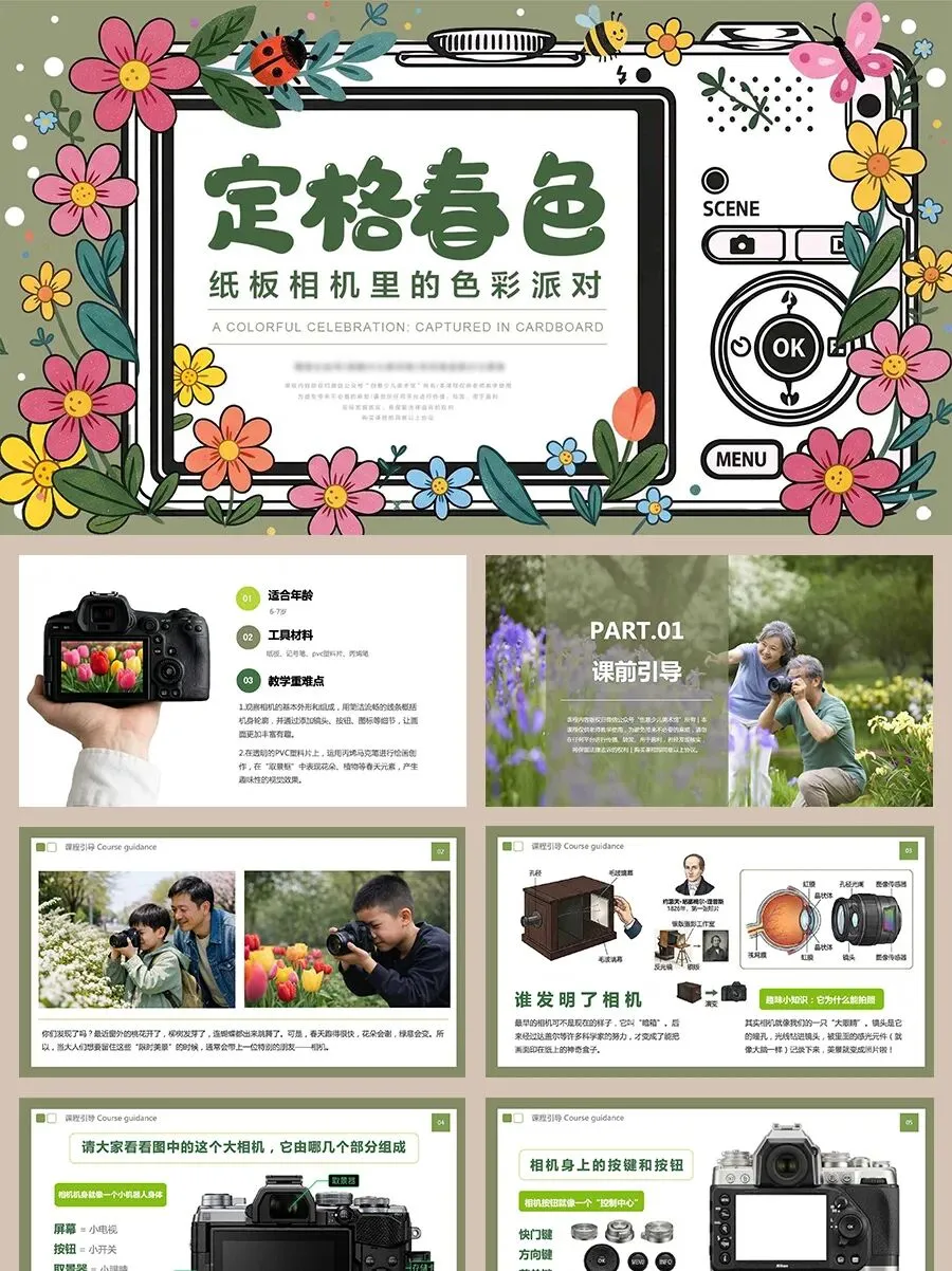 春天来了,花儿开了,小草变绿了,蝴蝶在花丛中飞来飞去,一切都变得特别美丽。不过,春天的美景就像一场短暂的魔法,过一段时间就会慢慢消失。于是,人们想出了一个好办法——用相机把这些美好的瞬间记录下来,让美丽可以被“保存”下来,一直留在我们的记忆里。