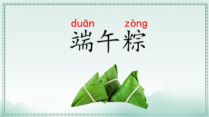 2.再过些日子,到了农历五月初五就是——端午节。端午节吃什么呢?(粽子)(出示:端午粽)认读,齐读。