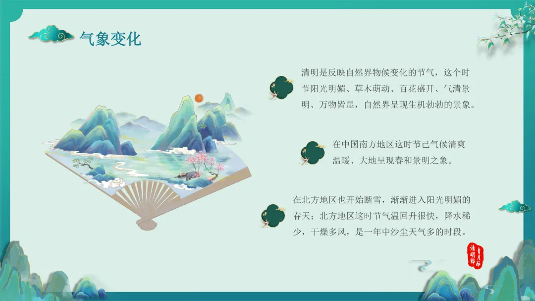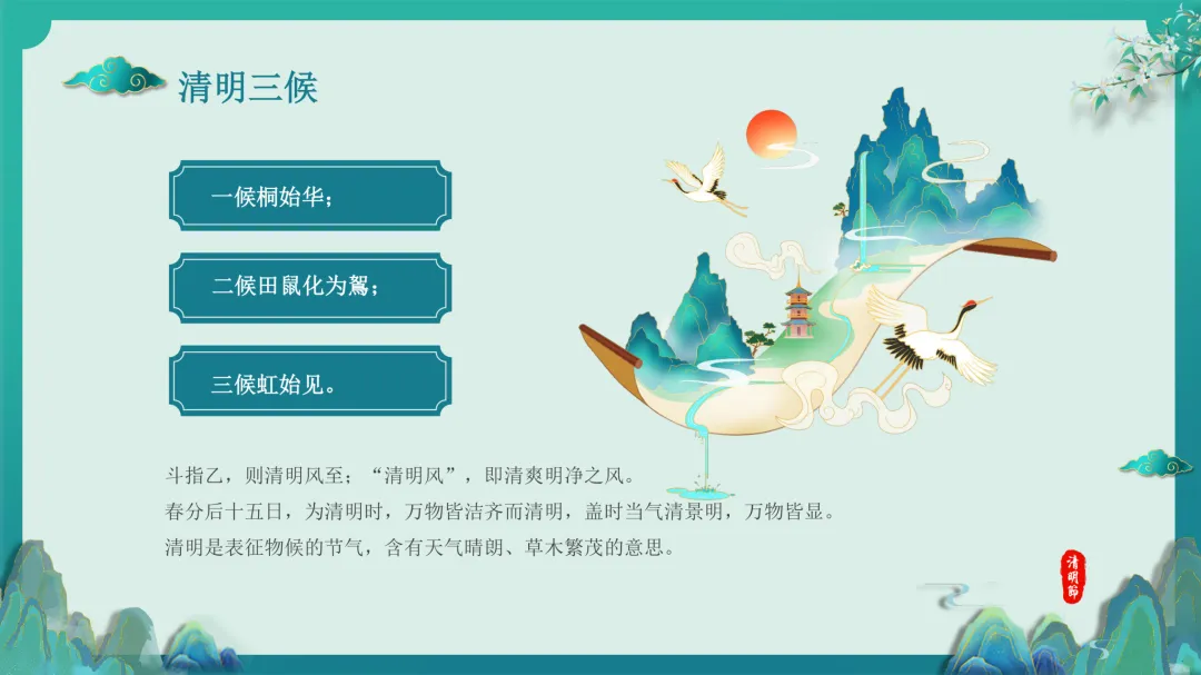 气候物候:结合“清明三候”,解读自然时序变化。