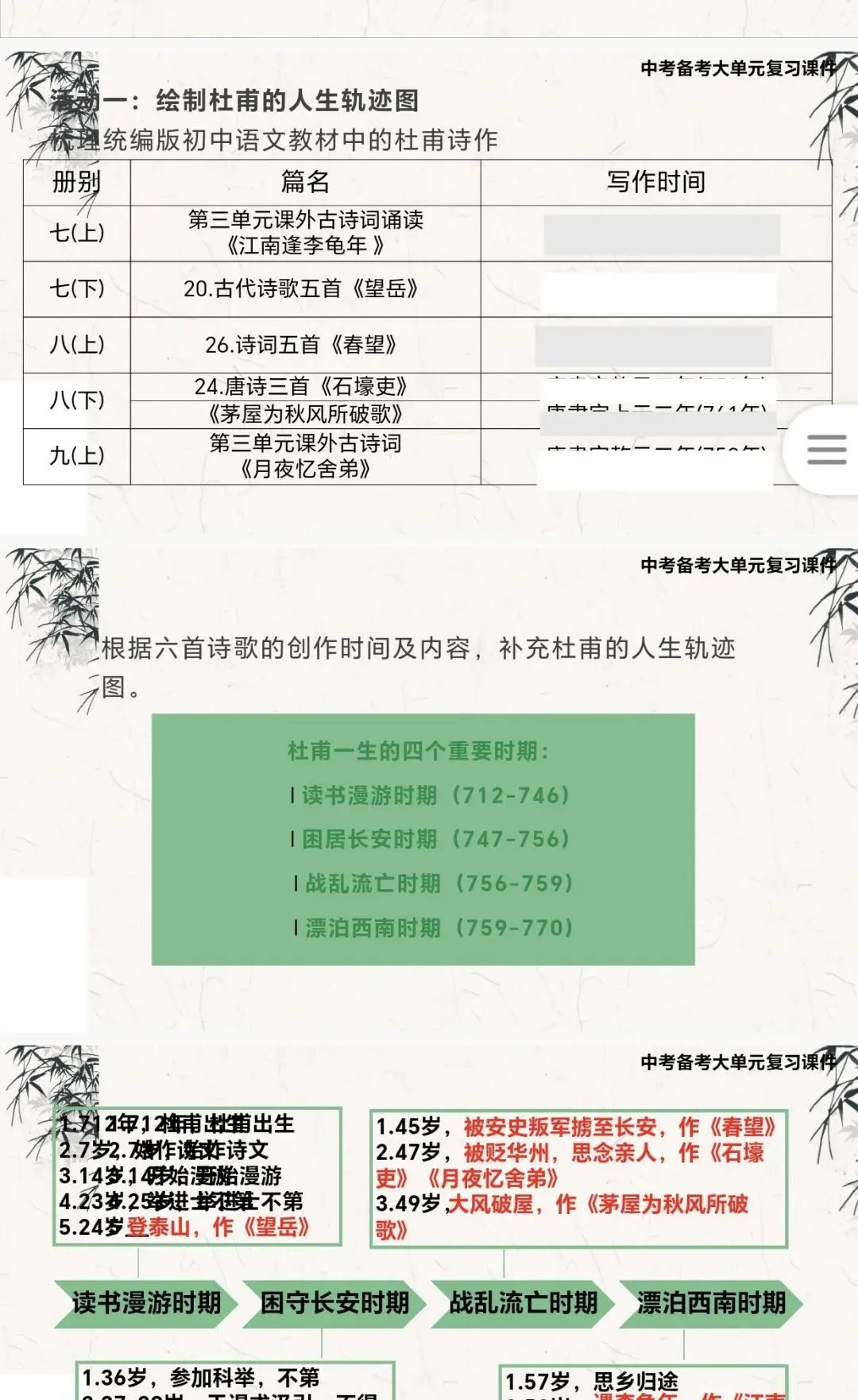 ✅ 初中六首杜甫诗歌对应时间、背景、情感