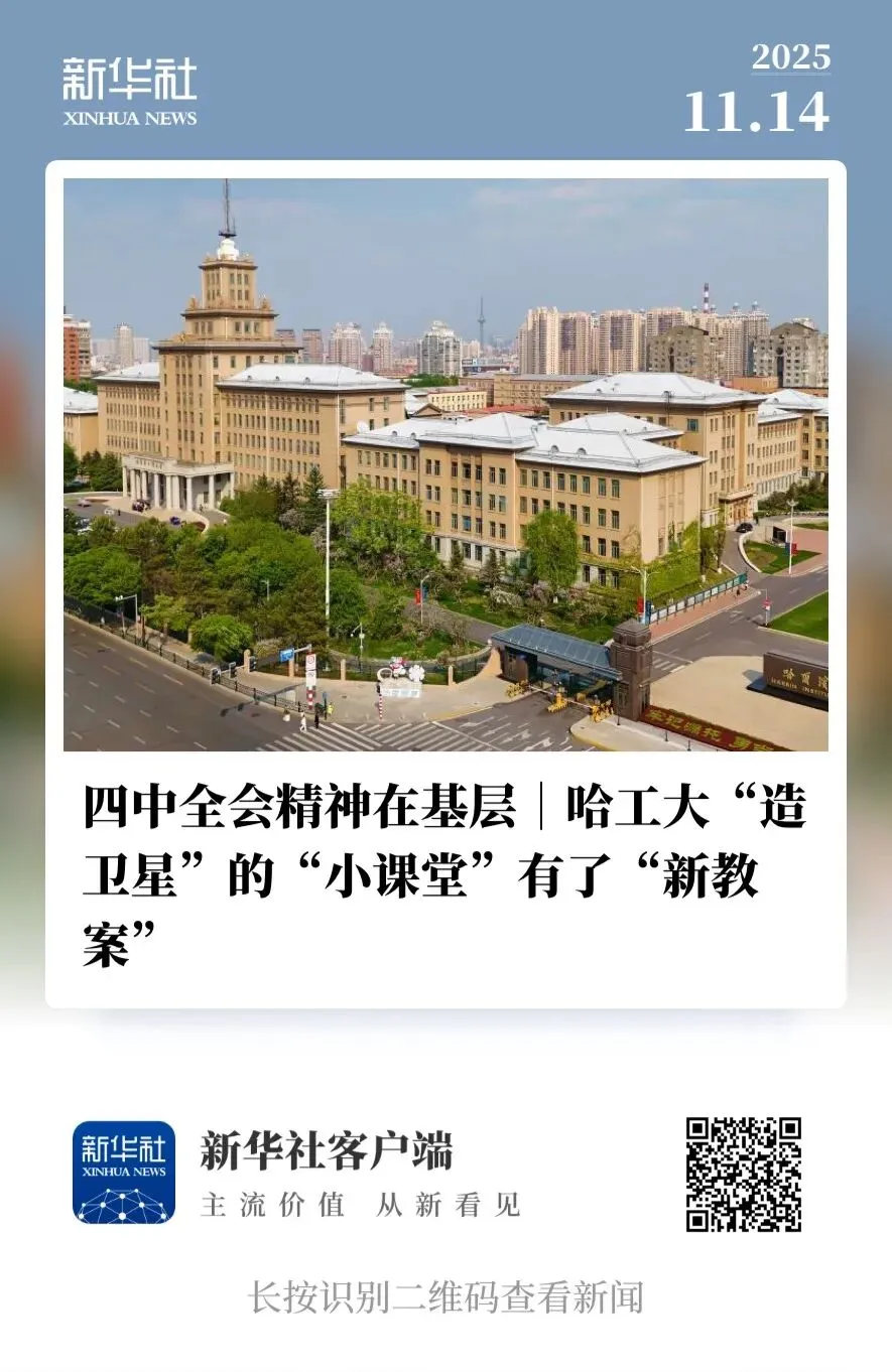 11月14日,新华社聚焦我校深入贯彻落实党的二十届四中全会精神、一体推进教育科技人才发展,推出《四中全会精神在基层|哈工大“造卫星”的“小课堂”有了“新教案”》专题报道,报道展现小卫星班以 “新教案” 培育拔尖创新人才,助力学生在 “真科研” 中成长,为服务国家重大战略和产业发展贡献力量。