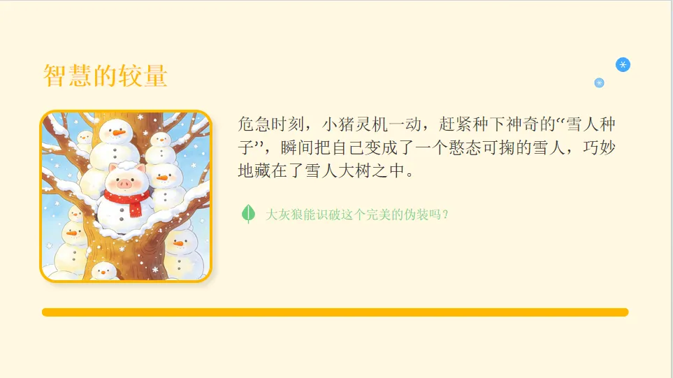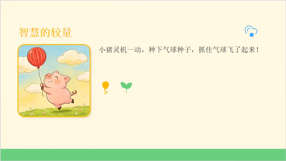 - 情感目标: 感受故事的趣味性,体验小猪用智慧解决问题的快乐,初步理解平凡事物的美好。