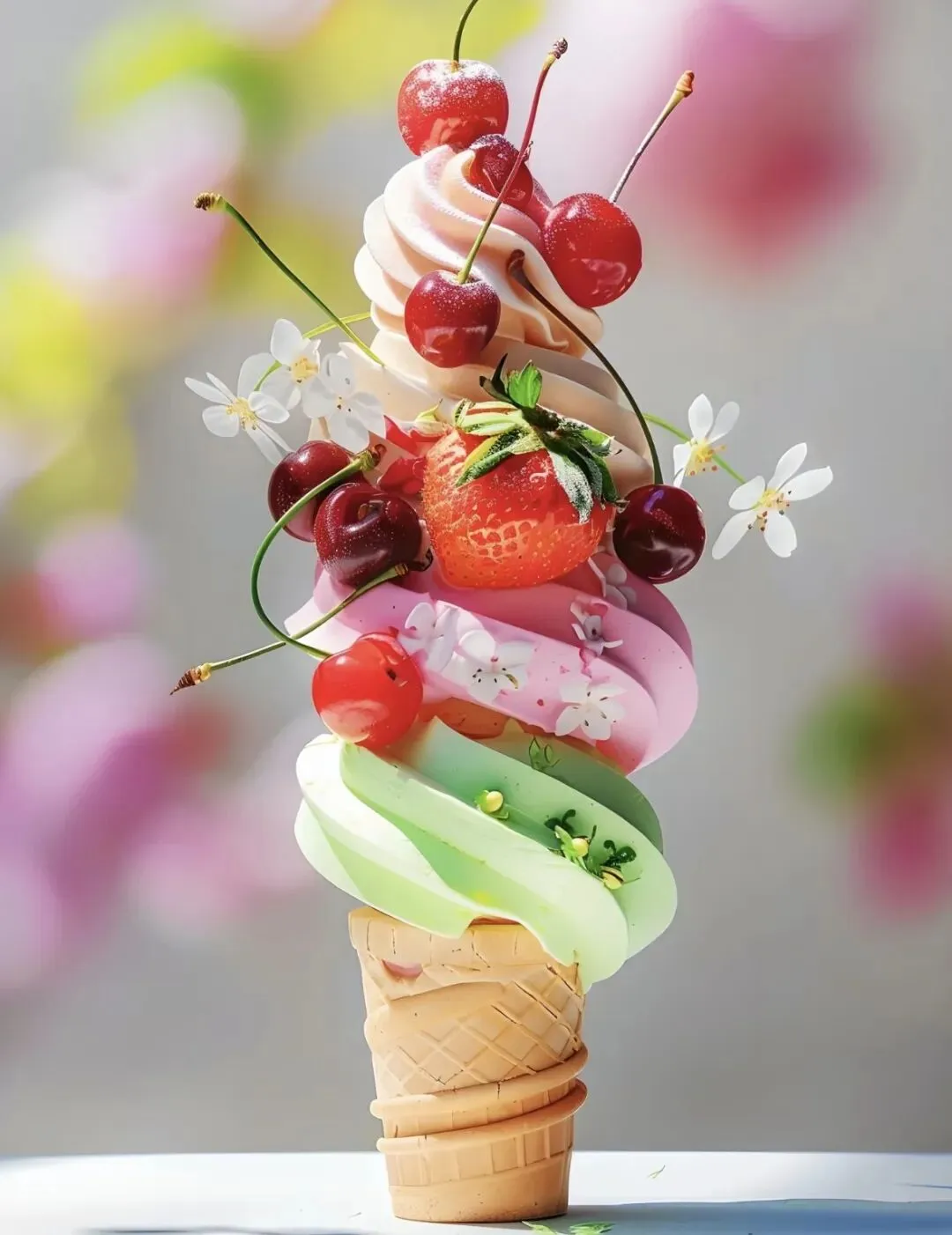 2. 冰淇淋实物、高清实拍图,包括不同口味、造型的冰淇淋,比如甜筒冰淇淋、圣代冰淇淋、冰淇淋杯等,帮助孩子观察结构。