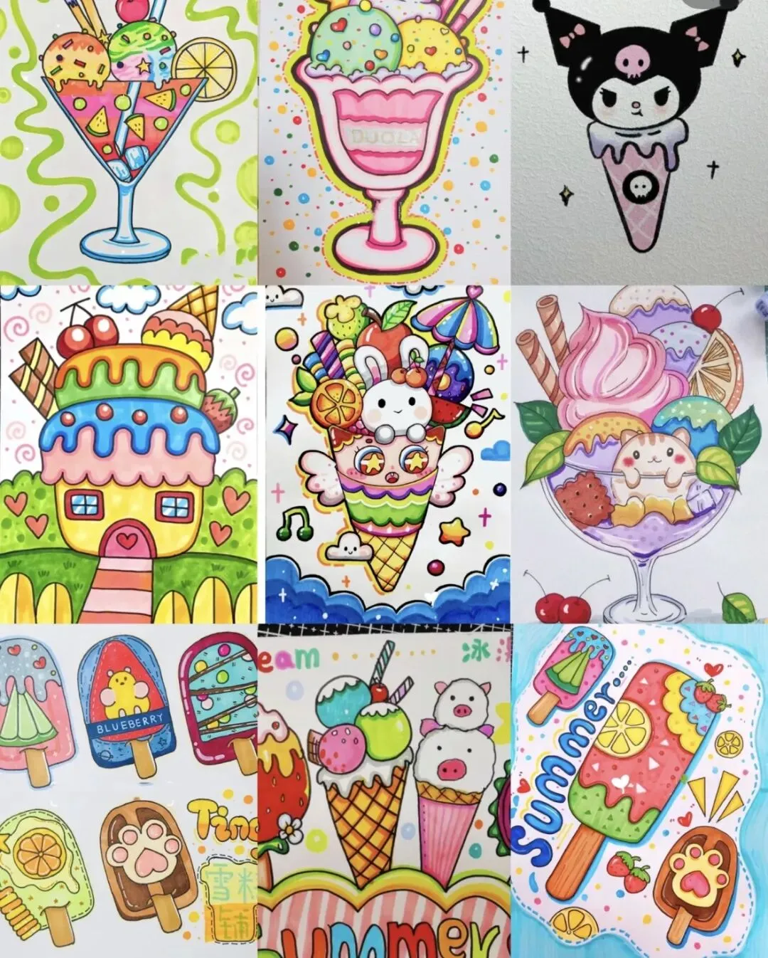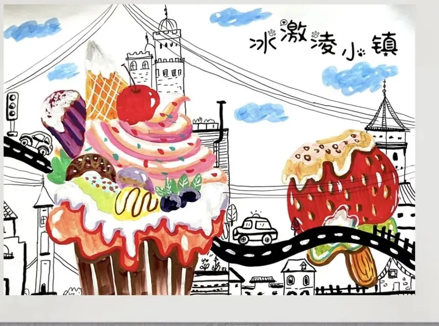 2. 引导孩子在创意变形中融入自己的想法,不局限于参考图,画出属于自己的独特冰淇淋小屋,提升原创性。