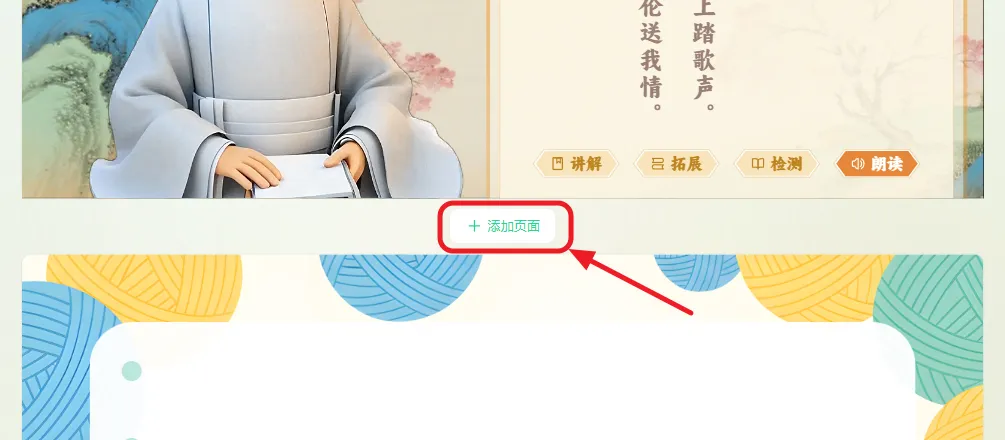 - 点击课件中间的【添加页面】。