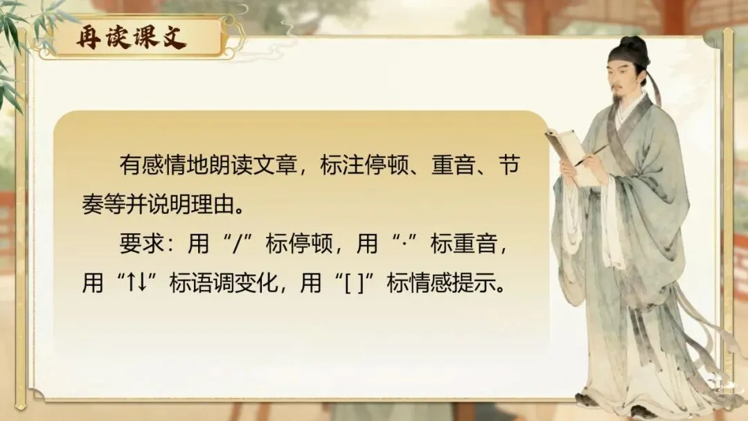 3.有感情地朗读文章,标注停顿、重音、节奏等并说明理由。