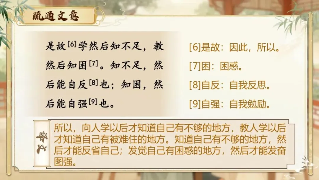 ③知不足,然后能自反也;知困,然后能自强也。