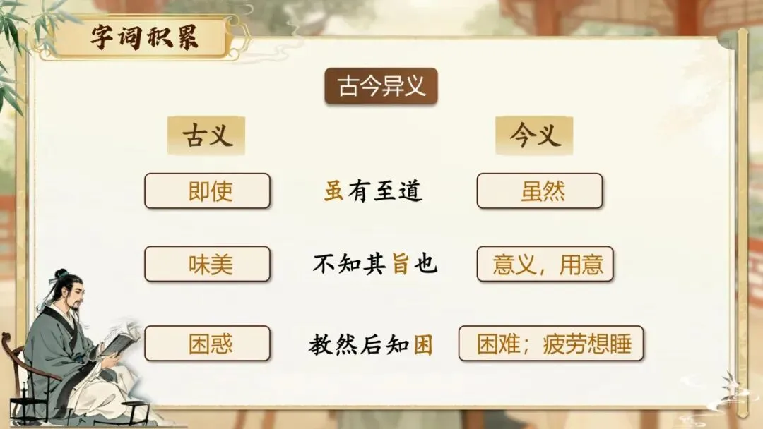 ②“旨”“善”:强调“不知”的遗憾,突出学习的重要性。