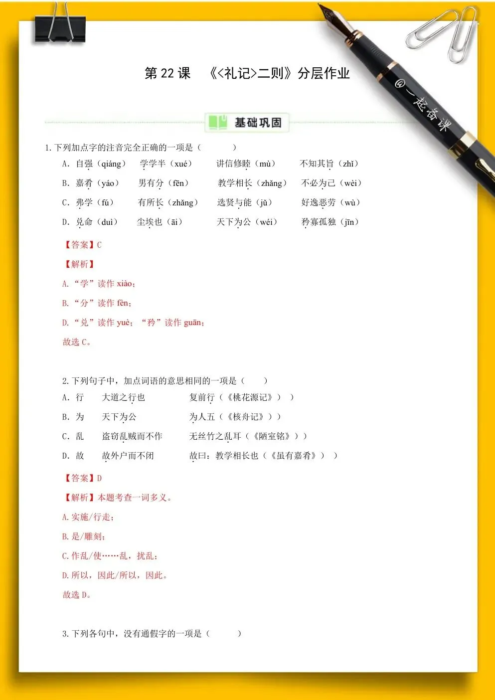 3.预习《大道之行也》,查找资料了解《礼记·礼运》的背景。